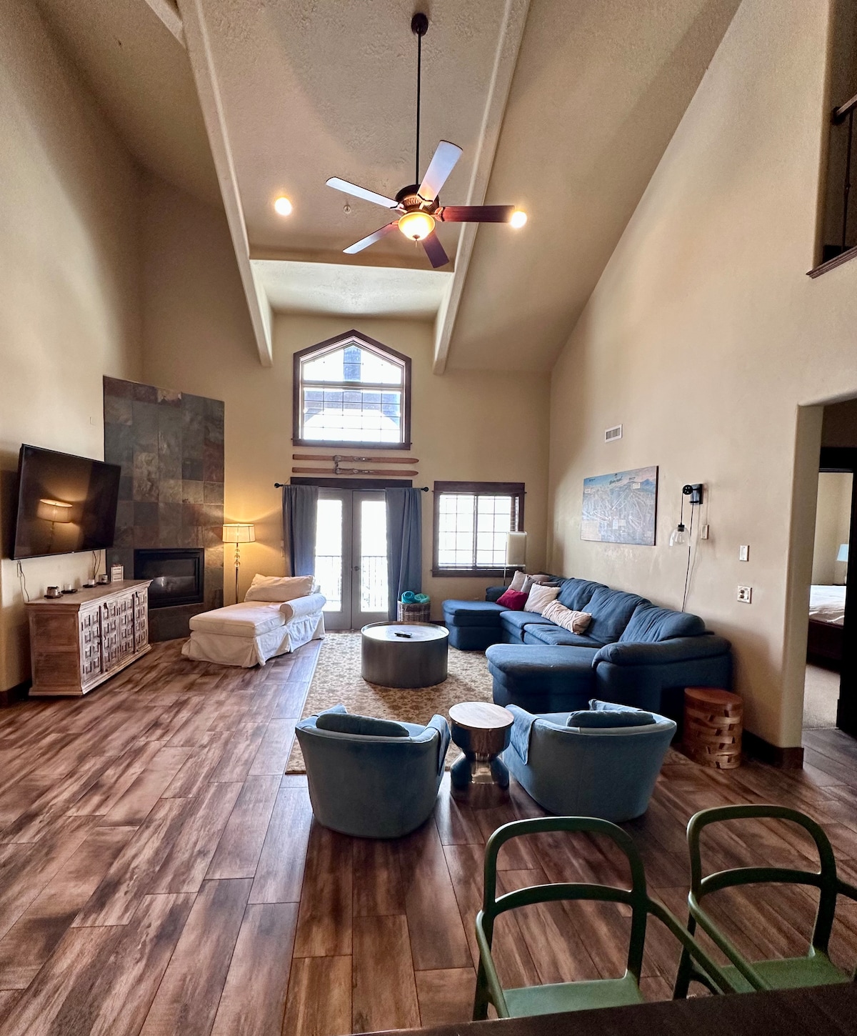Fühl dich in unserer wunderschön eingerichteten Wohnung direkt gegenüber der Hauptlodge und den Liften wie zuhause. Im vorderen Raum kannst du ein schönes Familienessen genießen oder ein Glas Wein am Kamin trinken. Die 20 Fuß großen Fenster und 2 Balkone ermöglichen es dir, die Bergsport- und Feuerwerkshows zu beobachten oder einem der Konzerte zuzuhören. Entspanne dich im gemütlichen Heimkino oder nimm an einem freundschaftlichen Wettbewerb in „The Game Zone“ mit der Tischtennisplatte und der 12.000 Spielautomaten-Konsole teil. Du wirst nicht mehr abreisen wollen!