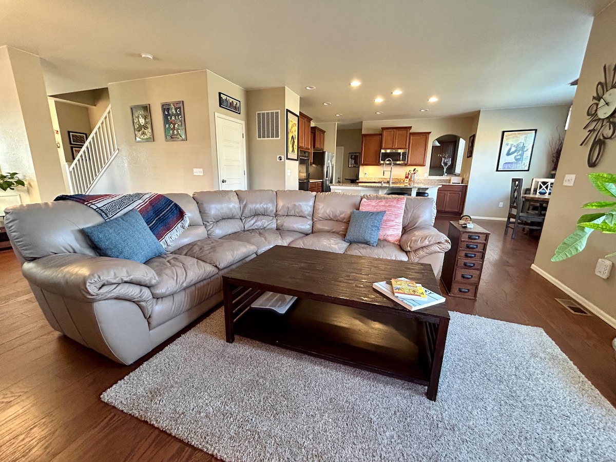 Nimm die ganze Familie mit in dieses neuere Haus mit viel Platz für Spaß und Unterhaltung. Dieses Haus mit 3 Schlafzimmern und 2,5 Bädern liegt perfekt zwischen dem internationalen Flughafen Denver und der Innenstadt von Denver und bietet alles, was du brauchst, um deinen Aufenthalt in Denver perfekt und komfortabel zu machen, einschließlich eines Hauptschlafzimmers im Erdgeschoss. Das separate Büro verfügt über Doppelmonitore und ein Dock für einfaches Einstecken des Laptops. Möchtest du ein schnelles Training absolvieren? Genieße das Peloton-Fahrrad im Haus oder mache einen kurzen Spaziergang zum nur zwei Blocks entfernten Fitnesscenter.
