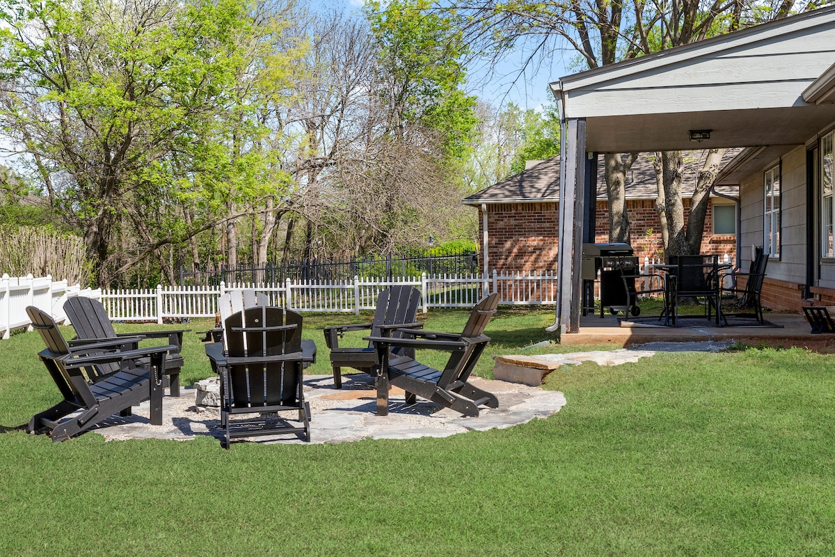 Willkommen im Herzen des Rose District! Unser 3-Schlafzimmer-Haus bietet 2 Wohnbereiche, einen eingezäunten Hof und unterhaltsame Extras wie Pool, Tischtennis, Cornhole und eine Feuerstelle. Hinter dem Hintertor befindet sich ein schöner Park mit Basketball, Pickleball, Tennisplätzen und einem Rosengarten. Genießen Sie Premium-Kaffee mit unserer Espressomaschine. Wir bemühen uns, den saubersten und komfortabelsten Aufenthalt in Broken Arrow zu bieten! Viele Grüße Adam und Kara