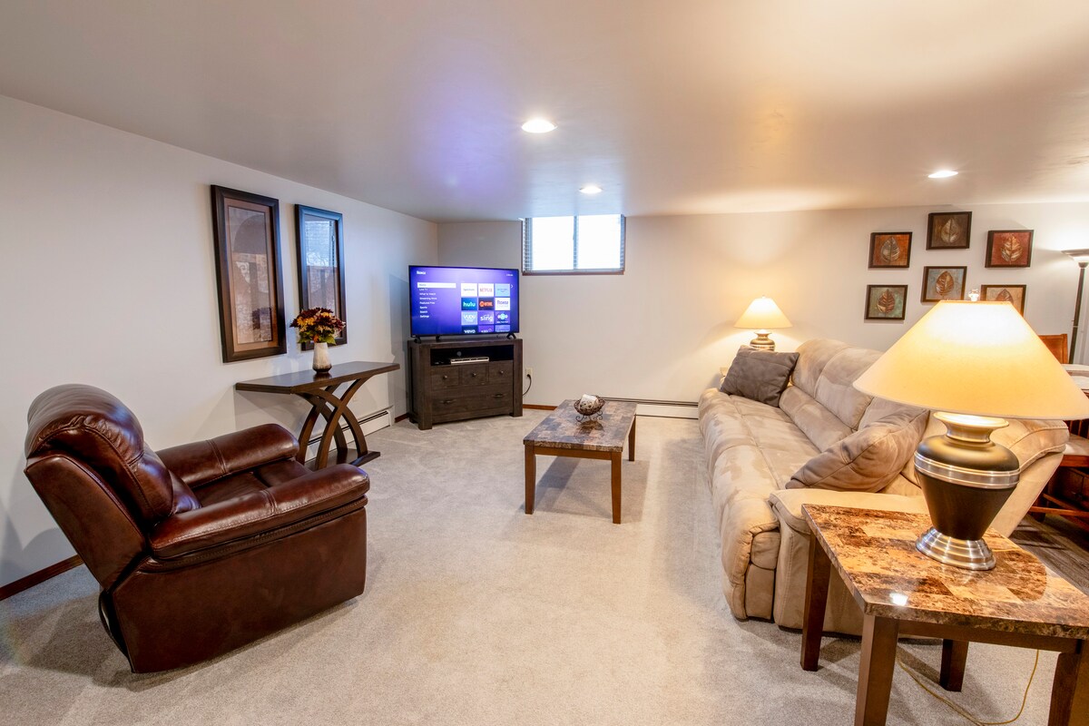 • Schnelle 3 Minuten von der Autobahn 43 entfernt. Green Bay: 15 Minuten und Manitowac ist nur 30 Minuten entfernt. • Voll ausgestattete Küche und reichlich Annehmlichkeiten. • Terrasse mit Feuerstelle • Haustiere willkommen • Flexibler eigenständiger Check-in/Check-out • Sichere, etablierte Nachbarschaft mit von Bäumen gesäumten, gut beleuchteten Straßen • Vollständiges spanisches Direkt-TV-Paket! • Koch-, Shuttle- und Wäscheservice verfügbar