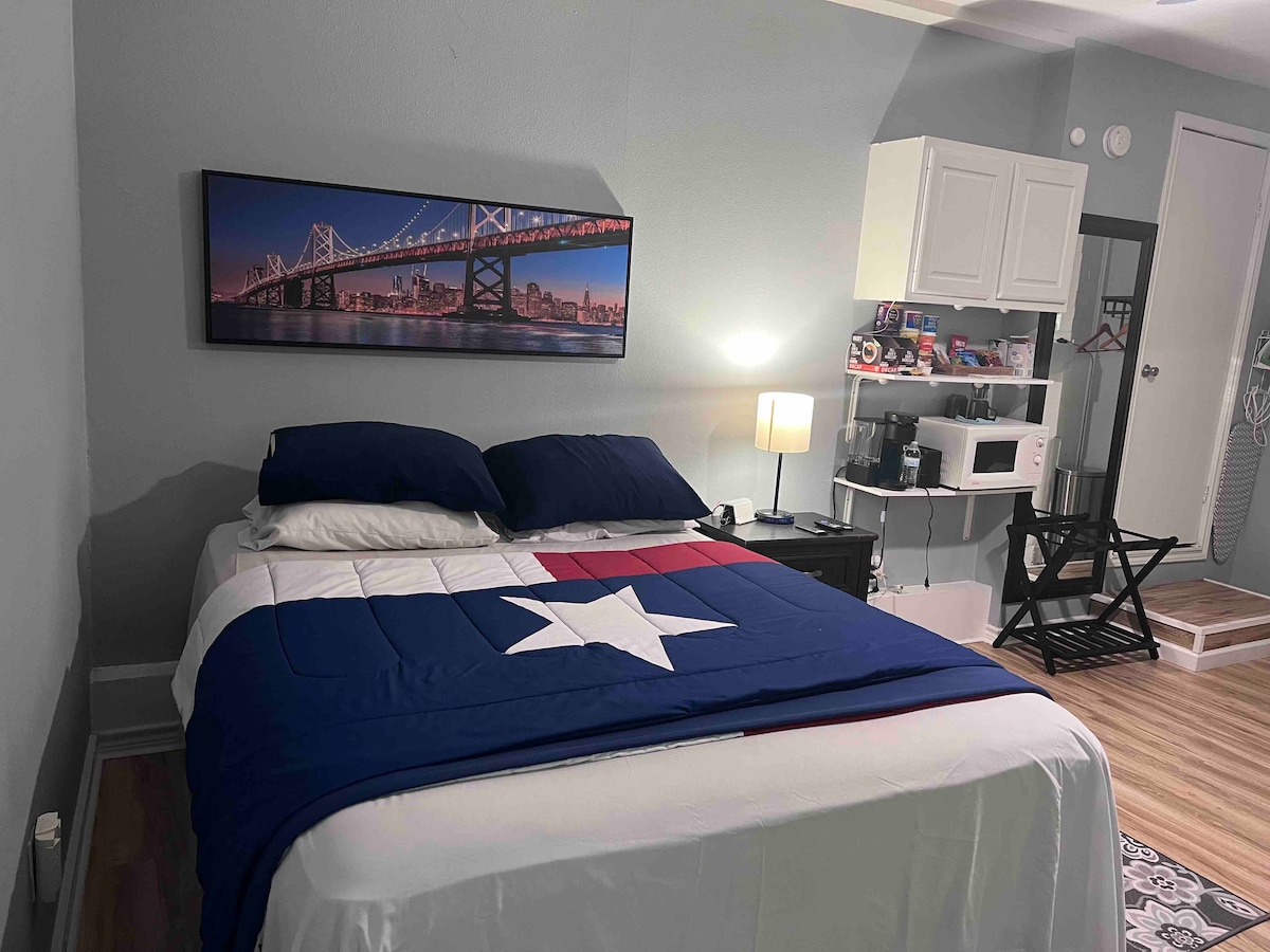 Hallo! Willkommen in Aggielands gemütlicher Hütte. Diese warme Atmosphäre ist ein toller Ort zum Zurücklehnen und Entspannen. Nur fünfzehn bis zwanzig Minuten von Kyle Field und sieben Meilen von Messina Hof Winery entfernt, hast du das Beste aus beiden Welten. Ein privater Eingang mit einem Carport gibt dir die Freiheit, zu kommen und zu gehen. Es gibt auch einen Teich auf dem Grundstück. Du wirst dich fühlen, als wärst du nach Hause gekommen. Du ziehst einen Anhänger? Es gibt genügend Parkplätze und mit einem codierten Tor-Eingang musst du dir keine Sorgen um die Sicherheit machen.
