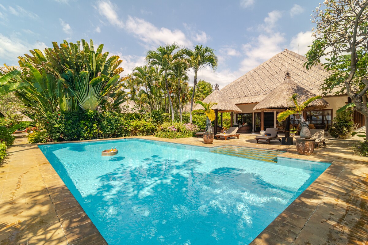 Die Villa Senja ist ein einzigartiges Haus am Strand mit einer luxuriösen und immer noch authentischen Atmosphäre aufgrund des einzigartigen, handgefertigten Interieurs im balinesischen Stil, das ein offenes Wohnzimmer mit einem professionellen Billard, 4 Schlafzimmer mit eigenem Bad und einen riesigen Pool (18 x 6 Meter mit natürlichen balinesischen Steinen) bietet. Lege dich in den Pavillon, beobachte den atemberaubenden Sonnenuntergang von der Terrasse aus, genieße einen Cocktail im Pool und genieße deine Zeit auf Bali.