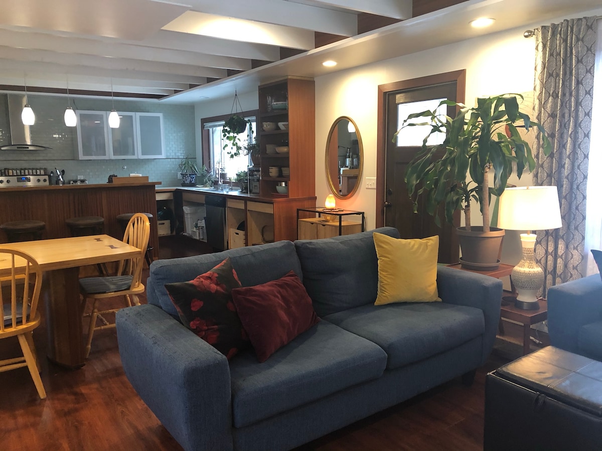 Entspanne dich in einem ruhigen Familienviertel, umgeben von einem einzigartigen Garten und einem großen Hinterhof. Das große Zimmer wurde zum Kochen und Teilen von Mahlzeiten mit Familie und Freunden entworfen. Gehe auf die Veranda, um die Aussicht auf die Klippen zu genießen und die Menschen beim Spazierengehen und Radfahren zu beobachten. In der Nähe von Wander- und Fahrradrouten des Bluffside Park und St. Mary's University und nur eine 15-minütige malerische Radtour vom Stadtzentrum entfernt.