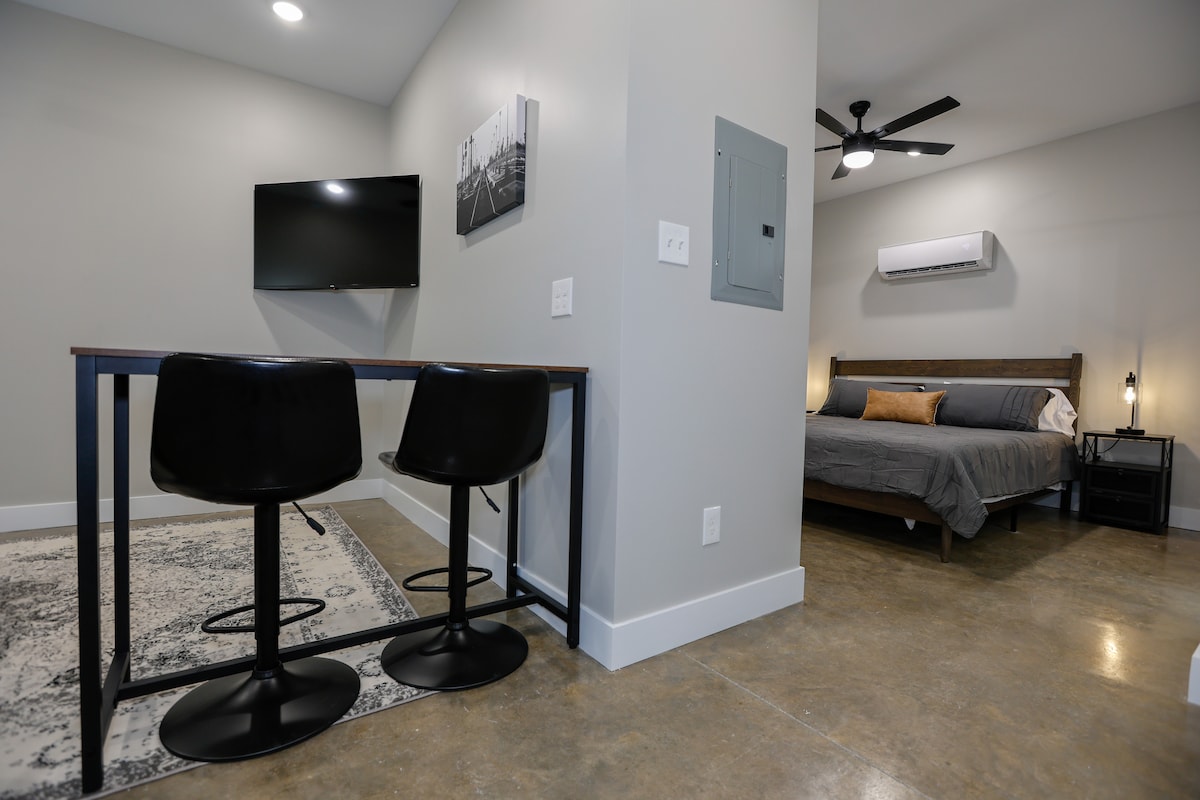 Genieße dieses rustikale, aber gemütliche, zweistöckige Scheunenhaus in der Nähe des Bourbon-Landes. Perfekt für einen Kurzurlaub zu zweit, verfügt es über offene Lofts mit einem bequemen Kingsize-Bett, eine Küche mit allem Notwendigen, eine Waschküche, einen Holzofen und zwei Badezimmer: eines mit einer ebenerdigen Dusche und eines mit einer Badewanne. Das Interieur dieser Unterkunft ist fertig, aber das Äußere ist noch in Arbeit, da wir weiterhin komfortable Außenbereiche schaffen. Du musst dir alle Bilder ansehen, um zu schätzen, was diese Unterkunft bietet.