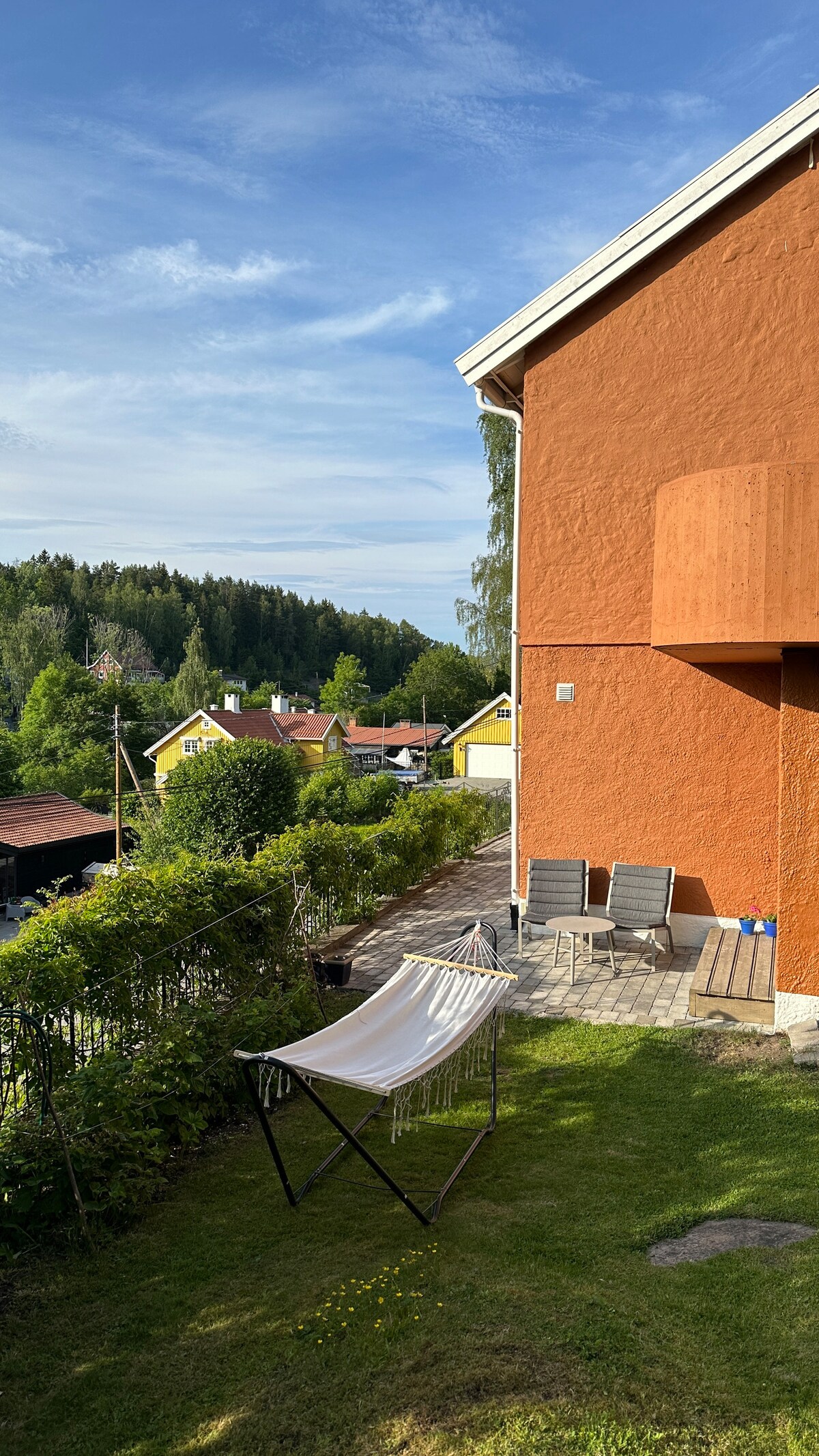 Die Hälfte eines Doppelhauses in der Innenstadt mit sonniger Terrasse. Die Unterkunft besteht aus Eingangshalle, 2 Schlafzimmern (mit 180 cm und 160 cm Doppelbett), Bad (mit Waschmaschine und Trockner), Technikraum und offenem Wohnzimmer/Küche Die Unterkunft ist gut ausgestattet mit dem, was du benötigst. Es gibt Glasfaser, TV im Schlafzimmer und Wohnzimmer. AppleTV und Channel-Paket Nur 700 m vom Bahnhof Hønefoss und 1 km vom Hønefoss Sentrum entfernt. Das Anwesen verfügt über kostenlose Parkplätze für bis zu zwei Autos. Ein Ladegerät für Elektroautos ist installiert, der Gast zahlt Strom für das Laden.