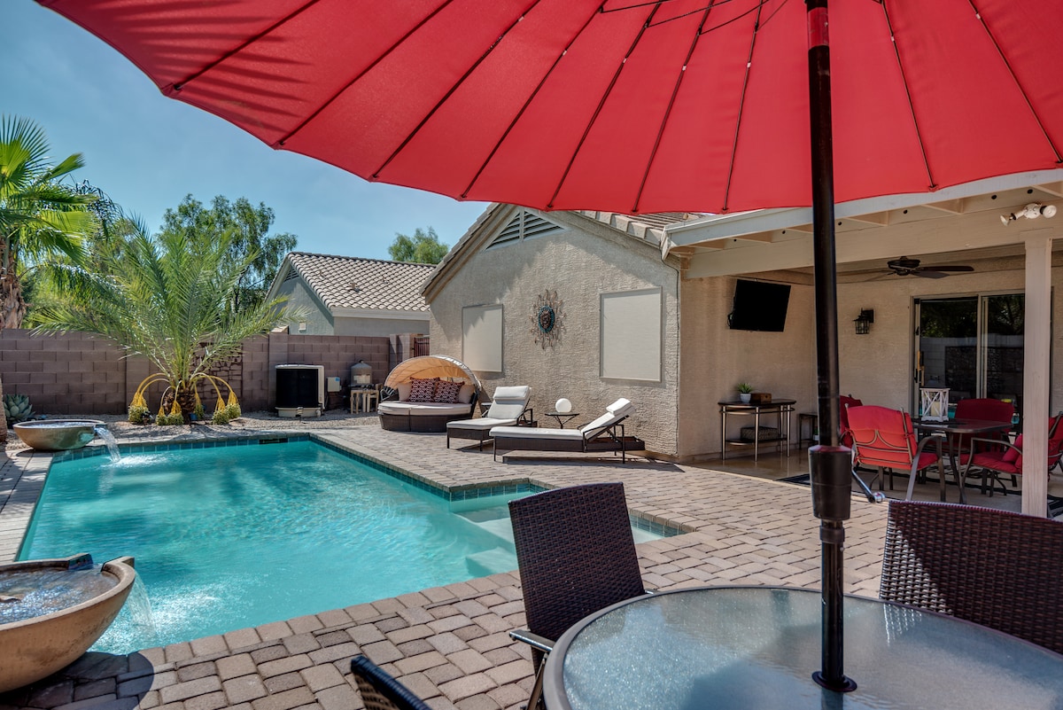 Willkommen im Desert Diamond Escape! Dein eigenes Stück vom Paradies im San Tan Valley, AZ! Unser tadellos eingerichtetes 1500 Quadratfuß großes Refugium verfügt über drei gemütliche Schlafzimmer und zwei luxuriöse Badezimmer. Tauche in unserem 12.000-Gallonen-Salzwasserpool mit einem beruhigenden Wasserfall in die Entspannung ein. Entspanne dich in unserer Außenoase mit einem charmanten Pavillon, einem Grill, Lounge-Sets und einem Putting-Green. Voll ausgestattete Küche, 4 Fernseher, Glasfaser-Internet. Verpasse nicht dieses außergewöhnliche Erlebnis! - Die Poolheizung ist eine zusätzliche Gebühr.