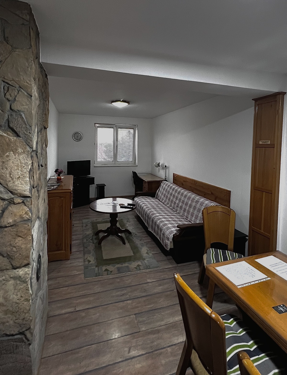 A one-bedroom apartment. The place itself is beautiful, made with passion and with details to keep our guests happy and satisfied with everything they might need. Is a great choice for a cosy and intimate stay! It typically offers a separate bedroom with a King bed and couch along with a living area, kitchen, and bathroom. A nice view of the river and the park. The layout is perfect for couples, solo travellers, or small families. The town centre is on 5-10 minutes woke Pet is not allowed.