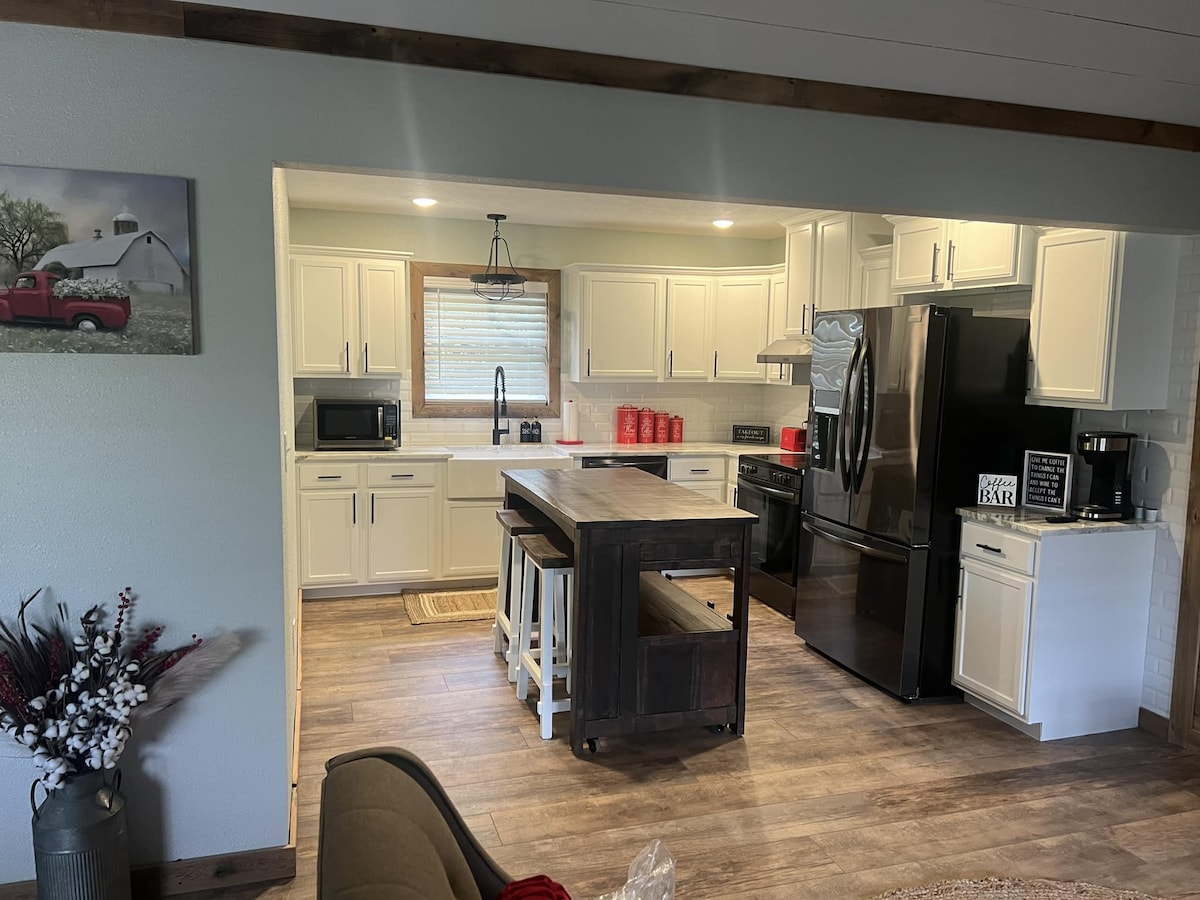Egal, ob du auf der Suche nach einem ruhigen Landausflug bist oder eine Veranstaltung bei A&M hast, brauchst du nicht lange weitersuchen als Cowabunga Cottage! Dieses komplett renovierte Ferienhaus aus den 1950er Jahren mit 2 Schlafzimmern und 1 Bad liegt weniger als 30 Minuten vom Kyle Field, Bryan College Station auf einer großen Rinderfarm und bietet alles, was du suchst, und vieles mehr. Partyterrasse im Freien, Feuerstelle, Gasgrill, Discgolf, Cornhole, Wippen und Hollywoodschaukel. Bei jedem Aufenthalt gibt es ein kostenloses Bündel Brennholz und Leckereien, um die Kühe von Hand zu füttern.