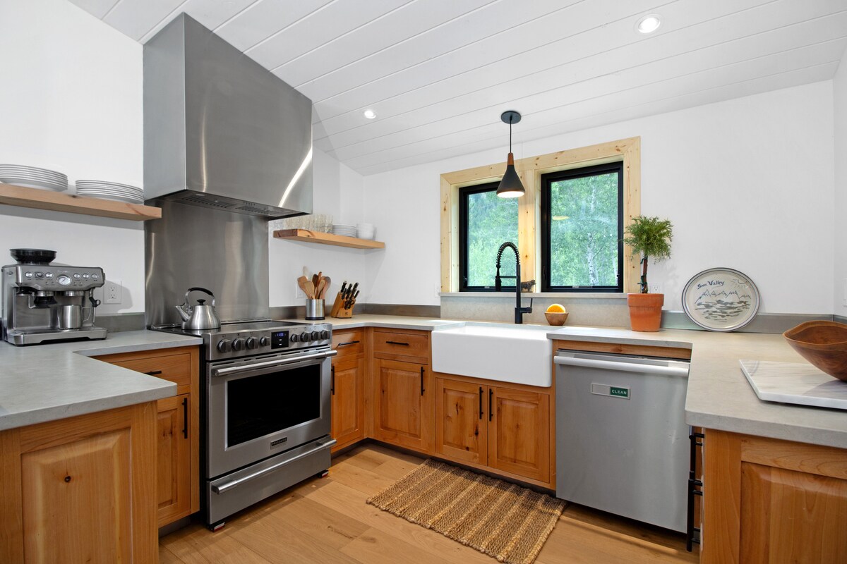 Diese helle, luftige, 900 Quadratfuß große, angeschlossene Wohnung wurde 2018 fertiggestellt. Nur wenige Minuten von der Innenstadt von Ketchum und dem Fuß des Warm Springs entfernt, ist diese moderne Unterkunft mit einem Schlafzimmer nur einen kurzen Spaziergang von der Bushaltestelle entfernt. Die Wohnung befindet sich auf zwei Etagen mit einem Queensize-Bett und einem privaten Badezimmer im Obergeschoss und einer ausziehbaren Couch im Erdgeschoss. Im Erdgeschoss befinden sich ein Wohnbereich und eine Küche sowie ein 1/2 Bad. Ideale Lage und für einen Winter- oder Sommeraufenthalt im Ketchum/SV-Bereich. Nur wenige Minuten vom Radfahren & Wandern und dem Skigebiet entfernt.