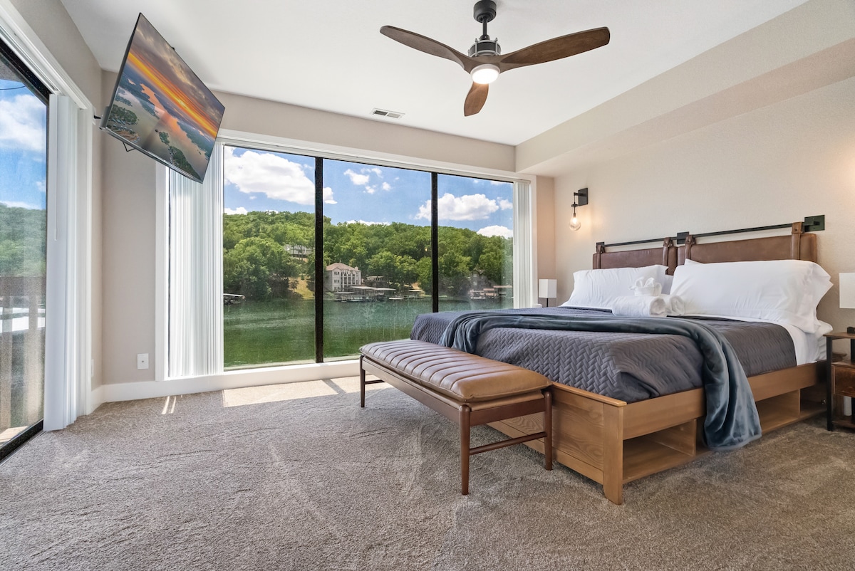 Atemberaubende Einzimmerwohnung mit Kingsize-Bett in Osage Beach. Tolle Aussicht! Überdacht, abgeschirmtes Deck mit Blick auf den See. Renoviertes SPA-Badezimmer mit italienischem Marmor. Durchgehend Hartholzböden. Bucht-Lage/21 Meilen-Markierung. Zu den Annehmlichkeiten gehören ein Bootssteg zum Mieten, Angeln, ein Kamin und ein Pool! Viele feine Restaurants, tolle Einkaufsmöglichkeiten und unterhaltsame Aktivitäten an Land/Wasser. Genieße das ganze Jahr über mit Terrassenheizung und elektrischem Kamin! Auch für Kurz-/Langzeitmiete verfügbar