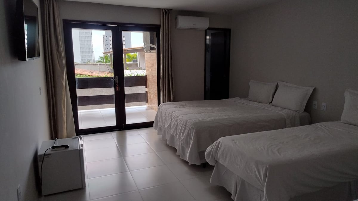 Todos os quartos possuem banheiro privativo, Smart TV, ar condicionado, Wi-Fi, ducha blindada, camas box e frigobar.