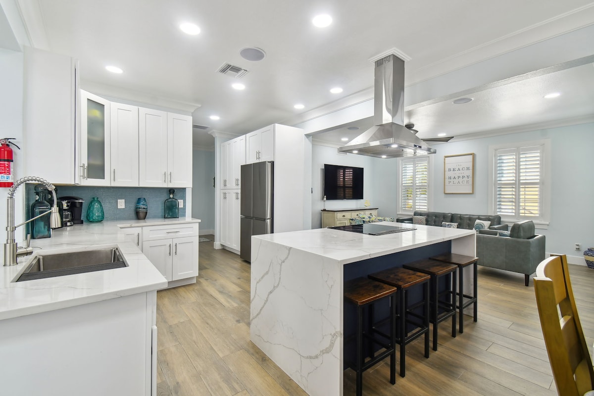 Hab Spaß mit der ganzen Familie in diesem stilvollen Costal Paradise Home in Neapel. Tropische Oase innerhalb weniger Minuten zu den Stränden, Restaurants, Einkaufsmöglichkeiten, Unterhaltung. Beheizter Pool/Spa, keine Düsen, WLAN, große Veranda mit Grill und mehr. Das Haus ist ein Haus mit 3 Schlafzimmern und 2 Badezimmern, komplett renoviert im zeitgenössischen Küstenstil mit Fliesenböden, Küstenkunst, großer Küche und vielem mehr. Kingsize-Bett, Queensize-Bett, 2 Doppelbetten, große modulare Couch. Das Haus bietet bequem Platz für 6 Erwachsene plus Kinder. Es hat alles, was du für einen tollen Urlaub benötigst.