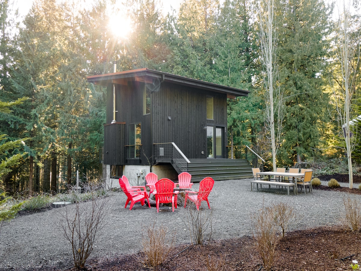 Totally private Tiny House with a million dollar view in the middle of the Columbia River Gorge. You can enjoy your own private Disc golf course. You will Love all The amenities, including Air conditioning, view of the Columbia River Gorge. A nice 8' x 16' deck with a gas fire pit. You will Enjoy the sunset with your favorite beverage around the gas fire pit or lay on the double hammock watching the stars. You can even hike right out the front door into the Gifford Pinchot national forest