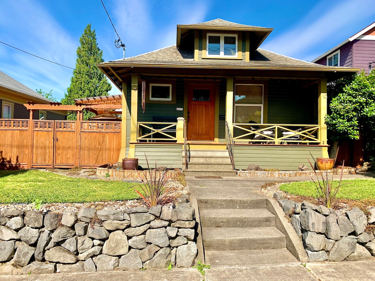 Retreat to our classic Portland Craftsman, perfectly situated in the vibrant Overlook neighborhood. Whether you're here for a weekend getaway or an extended stay, our home offers the ideal balance of historic charm and modern comfort. Spend your days exploring local coffee shops and pubs just steps away, then head home to unwind in the private hot tub. With spacious living areas designed for relaxation, it’s the perfect home base for families and groups looking to live like a local.