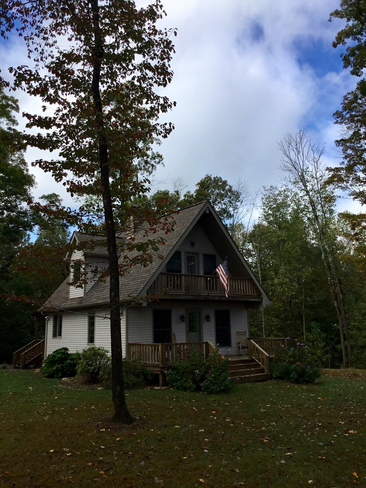 Queensize-Bett in der Master-Suite mit großem eigenem Bad, Queensize-Bett und Einzel-Futon in einem geräumigen Zimmer mit herrlichem Blick auf die Landschaft vom Fenstersitz aus sowie einem großen Schlafloft mit einem vollwertigen Bett. Umlaufende Veranda mit herrlichem Blick auf die Landschaft. Ein schöner Ort zum Entspannen und Erneuern.