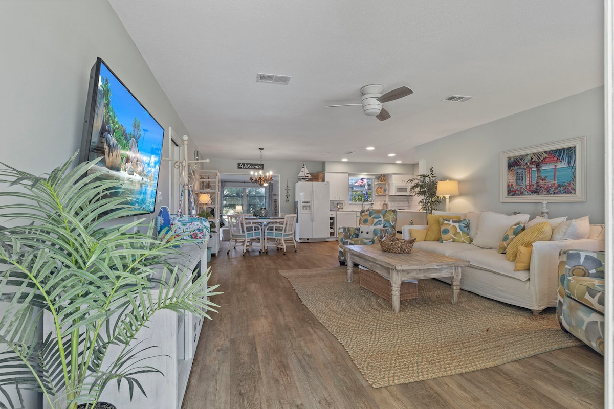 Schönes, helles, frisch eingerichtetes Haus mit 3 Schlafzimmern, nur 2 Meilen von den Stränden der Golfküste entfernt. Wenn du nicht am Strand bist, kannst du dich auf der Veranda mit einem Salzwasserpool (beheizt von November bis März) und einem Whirlpool in unserem privaten Garten entspannen.
