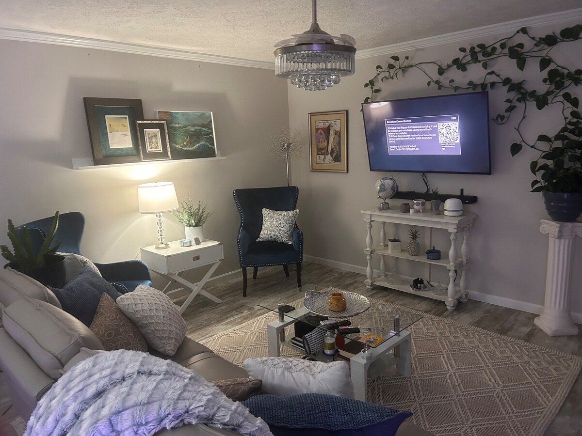 Helles und stilvolles Refugium mit Arbeitsbereich und gemütlicher Lounge