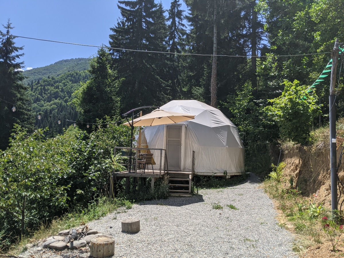 Die beiden Kuppeln von Ajara Glamping befinden sich an einem perfekten Ort, der die wunderschöne Landschaft und den dichten Wald verbindet. Es bietet viel mehr, als der Preis angeben könnte. Alle notwendigen Annehmlichkeiten und die Verfügbarkeit von Wanderwegen, Geschichte und natürlichen Sehenswürdigkeiten in kurzer Entfernung können deinen Aufenthalt unvergesslich machen. Perfekte Aussicht, komfortables Zelt, Ruhe, herrliche Natur und Gelegenheit, unerwünschte Ajara zu bekommen, sind Schlüsselwörter.