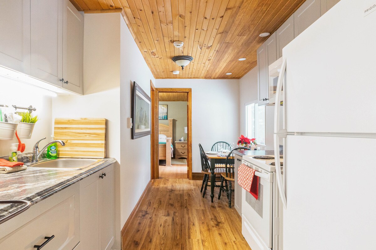 Schöne Wohnung im „Kulturerbe-Viertel“ von Peterborough. Der perfekte entspannende und gemütliche Raum für ein oder zwei Personen, die geschäftlich oder privat hier sind. In dieser abgeschlossenen, unteren Ebene unseres Hauses haben die Gäste einen separaten Eingang, eine Terrasse, eine voll ausgestattete Küche mit allem, was dazu gehört, und Zugang zur Außensauna für diese kalten Tage. Du wirst dich wie zuhause fühlen! Nur 10-15 Gehminuten von Restaurants und Unterhaltungsmöglichkeiten in der Innenstadt entfernt, in der Nähe von PRHC und nur wenige Meter von der Buslinie entfernt.