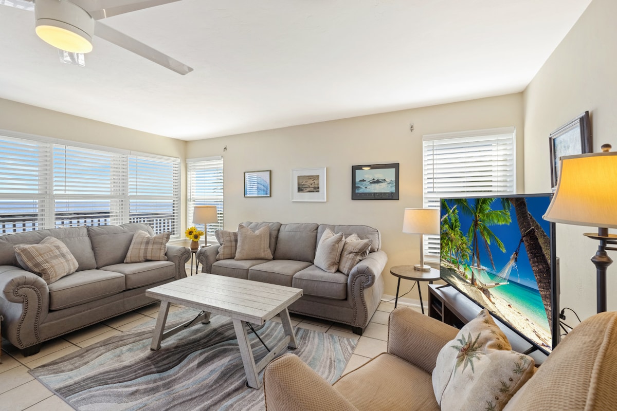 Wunderbare, renovierte Eigentumswohnung MIT MEERBLICK! Stell dir vor, du wachst mit erstaunlichen Sonnenaufgängen über dem Golf auf und genießt den farbenfrohen Himmel bei Sonnenuntergang direkt von deiner privaten Terrasse aus! Diese Dachgeschosswohnung hat alles, was du brauchst! Voll funktionsfähige Küche, 2 Schlafzimmer/2 Bäder, Esstisch und geräumiger Wohnbereich mit einem 70-Zoll-TV. Der Komplex verfügt über Boots-/Anhängerparkplätze und einen kleinen Privatstrand. Es ist der perfekte Ort, da es weniger als 1 Meile zu den meisten Restaurants, Geschäften, Bars, Parks usw. ist!