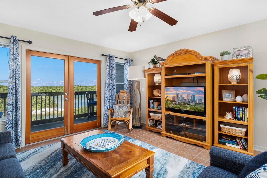 Das Salty Snook ist eine neu renovierte Eckeinheit in der schönen Suwannee Cove in Suwannee, FL. Das Schönste an dieser Einheit ist die PRIME LAGE im Komplex und dass dein privater Bootssteg direkt unter deinem Balkon liegt. Du hast einen eigenen persönlichen Wasser- und Stromturm mit deinem Bootsslip. Diese Wohnung liegt auch direkt neben dem Poolbereich. (Nur ein paar Schritte). Deine geflieste Terrasse in der Ecke ist groß und deine Aussicht auf den Golf, den Suwannee River und den gesamten Komplex ist fantastisch.