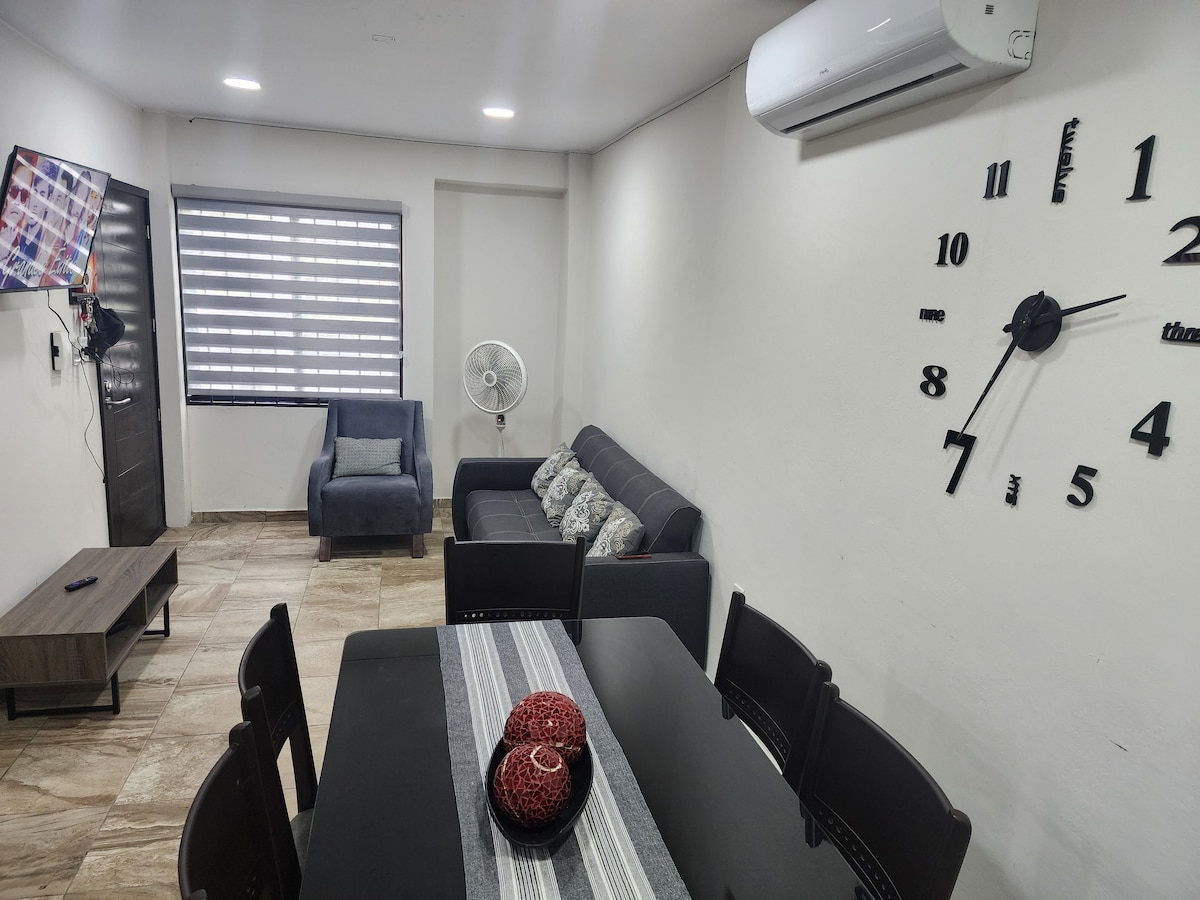 Mach eine Pause und genieße diesen ruhigen Ort, der 20 Minuten vom Strand von Tuxpan entfernt liegt. In der Umgebung findest du Lebensmittelgeschäfte, Grünanlagen, Tortillerias, Wäschereien und nachts findest du Antojitos, Tacos, Burger und Hotdogs. Das Haus verfügt über 2 Schlafzimmer, ein Badezimmer und ein halbes, Küche, Wohnzimmer, Terrasse und Parkplatz und WLAN-Service. Wir sind 5 Minuten vom Einkaufszentrum entfernt