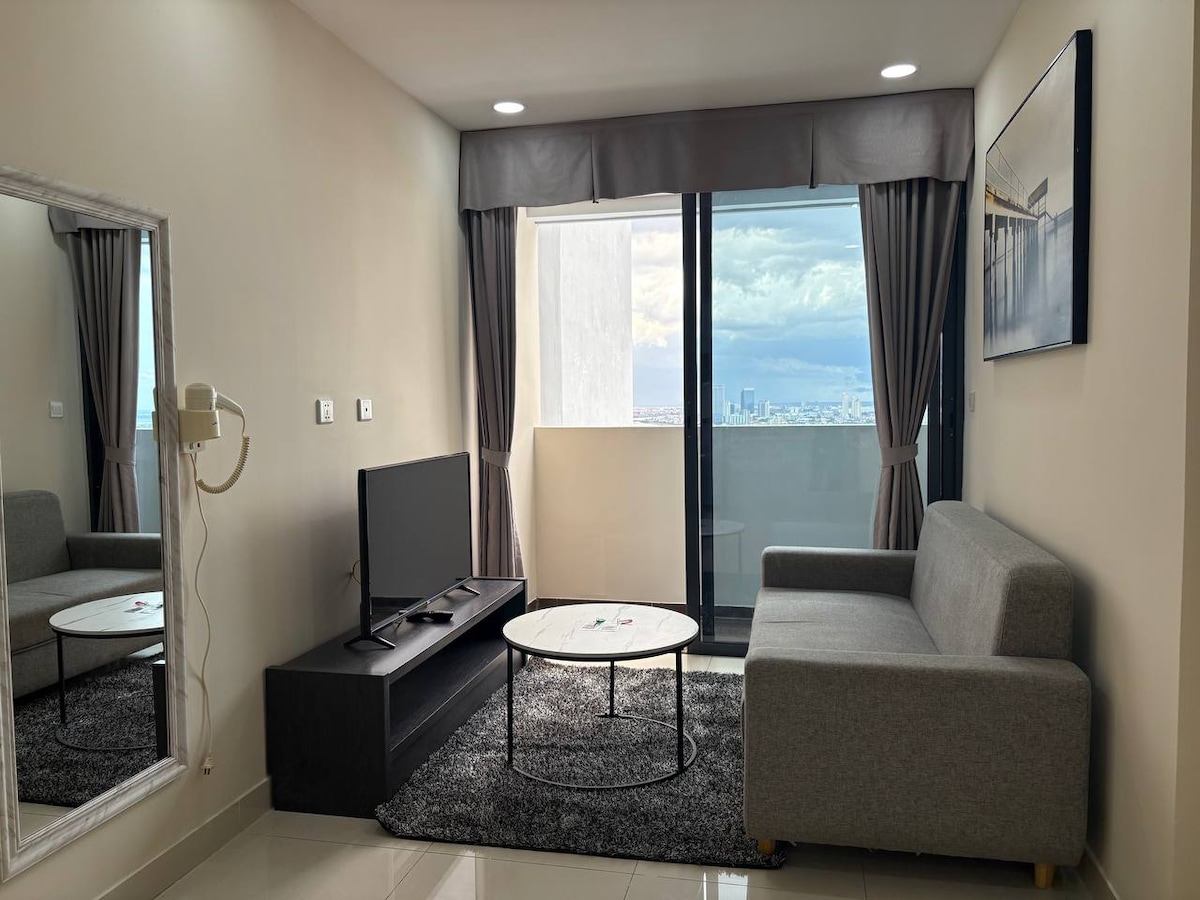 Gemütliche, gut ausgestattete Wohnung im Zentrum von Phnom Penh, ideal für Arbeit und Entspannung. Es verfügt über ein Schlafzimmer, ein eigenes Bad, einen geräumigen Schreibtisch und eine voll ausgestattete Küche. Genieße kostenlosen Zugang zu einem Pool auf der Dachterrasse, einer Sauna, einem Fitnessraum und einer atemberaubenden Aussicht. Ideal in einer zentralen Gegend gelegen, bist du in der Nähe der besten Restaurants, Geschäfte und Sehenswürdigkeiten. - 10 Minuten zur AEON Mall 1 - 5 Minuten zum S21-Gefängnis - 10 Minuten zum Königspalast - 2 Minuten zum Toul Tom Pong Market (russischer Markt)