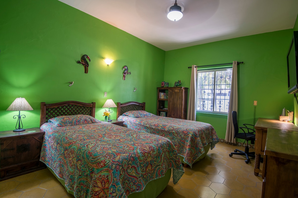 Die mexikanische Designer-Villa bietet einen privaten solarbeheizten Pool, einen üppigen Garten, eine Klimaanlage und eine Mischung aus traditionellem Charme und modernem Komfort. Nur wenige Blocks vom Chapala-See, dem Malecón, der Plaza und nur wenige Schritte von einer nahe gelegenen Bar, Geschäften, Restaurants und Galerien entfernt. Entspanne dich im Pool, genieße vorbeifahrende Pferde oder festliche Paraden. Ein ruhiger Rückzugsort nach der Erkundung von Ajijic und dem Chapalasee. ☞ Privater Pool | Garten | Terrasse Zugang zum ☞ See (5 min) | Concierge* ☞ 1 Schlafzimmer mit eigenem Bad | Schnelles WLAN 214 Mbit/s