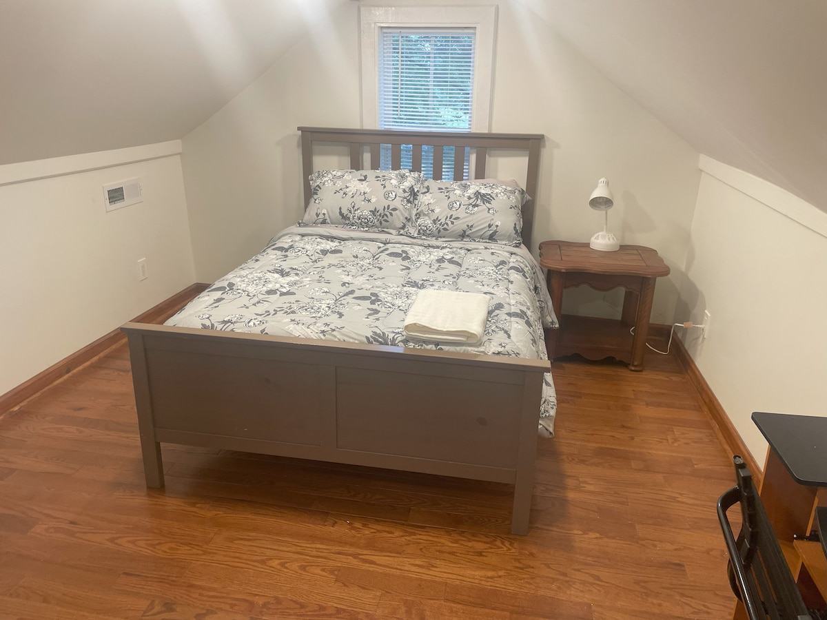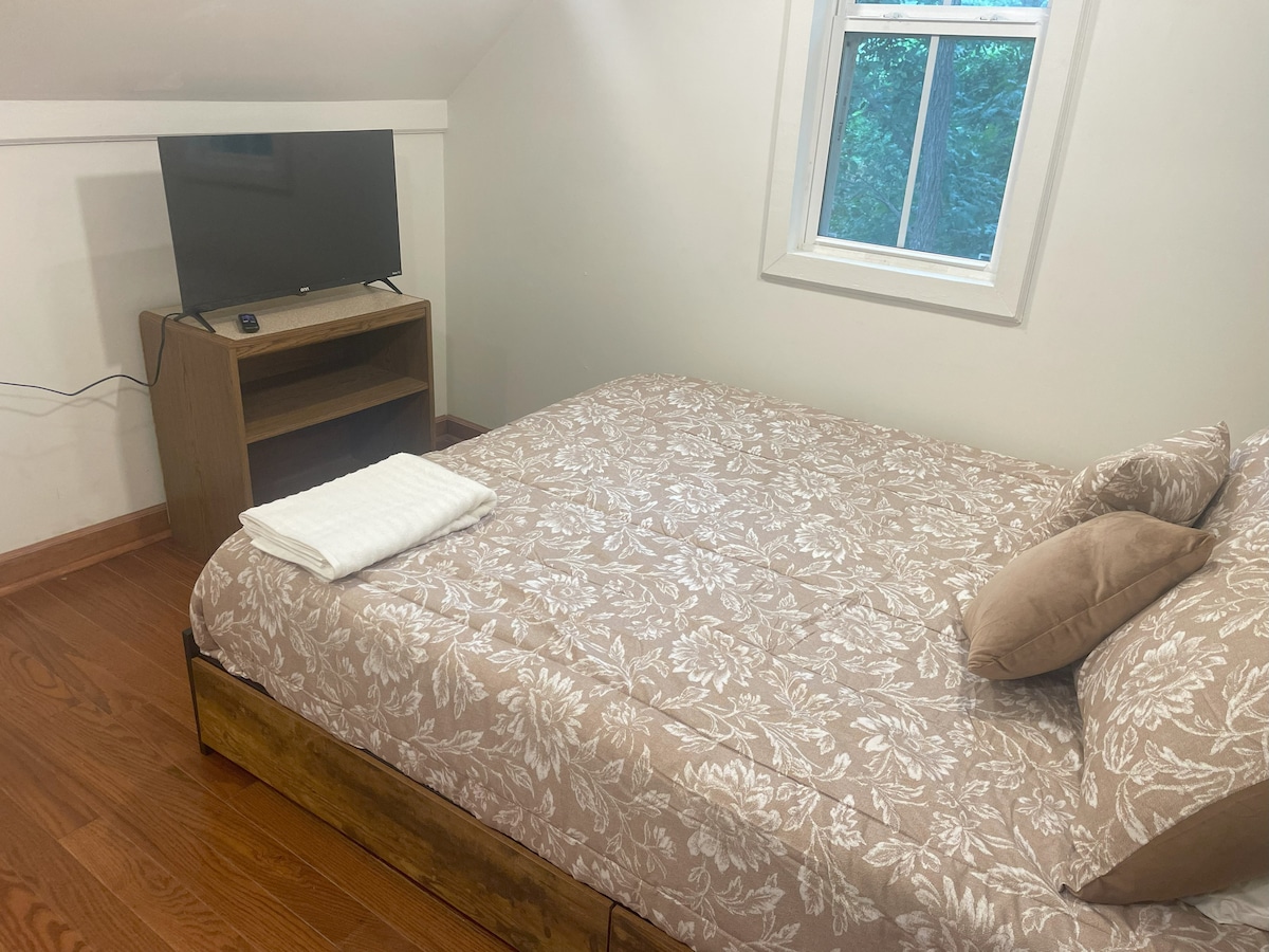 Großes Zimmer mit Queensize-Bett und eigenem Badezimmer