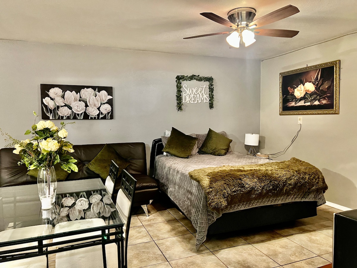 Gönn dir eine Pause und entspann dich in dieser friedlichen Oase, während du alles „Außerirdische“ erkundest. Weniger als 2 Meilen zur Innenstadt, Einkaufsmöglichkeiten, Museen, Hundepark und Wanderweg. Erkunde das Bitter Lakes Wildlife Refuge, das weniger als 7 Meilen entfernt liegt. Dieser gemütliche Wohnraum bietet ein abgeschiedenes Haus mit zwei Schlafzimmern, einer voll ausgestatteten Küche und 1,5 Badezimmern sowie kostenlosen Parkplätzen vor Ort.