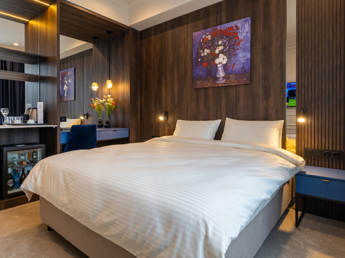 DreamHotel - Апарт-отель в сердце Кишинёва Удобства в номерах Кухня и бытовая техника: - Полностью оборудованная мини-кухня - Холодильник - Микроволновая печь - Чайник Комфорт и развлечения: - Телевизор - Кондиционер - Собственная ванная комната - Бесплатный Wi-Fi на всей территории - Частная парковка DreamHotel предлагает комфортное размещение в самом центре культурной жизни Кишинёва, сочетая удобство расположения с полным набором современных удобств для комфортного проживания.