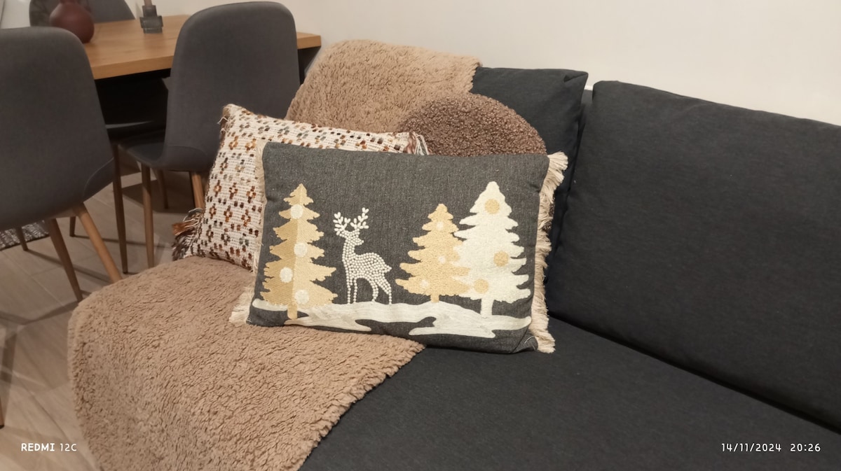 Die Wohnung befindet sich im Zentrum von Kalampaka. Nur 200 m vom Bahnhof und Busbahnhof entfernt. Viele Restaurants, Supermärkte und Nachtleben sind zu Fuß erreichbar. Jedes Schlafzimmer ist mit einer anatomischen Queensize-Matratze, hochwertigen Bettlaken, Klimaanlage und einem Flachbild-TV ausgestattet. Pflegeprodukte, Handtücher und Hausschuhe werden bereitgestellt. Einige Frühstücksartikel und ein Begrüßungsgetränk findest du in der voll ausgestatteten Küche. P.S. Genieße den Blick auf Meteora sowohl vom Wohnzimmer als auch vom Balkon aus.