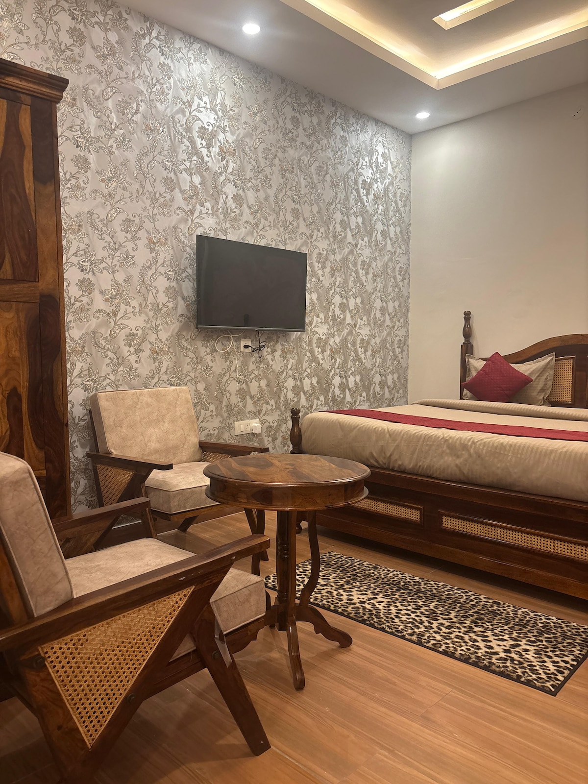 550 sqft area's of Suite Bed Room with big size bathroom (Jacuzzi bathtub in this bathroom with facilities of FM, BT, LED lights, massage jets etc.) and steam bath. Big windows of rooms with Amazing view of city which looks absolutely stunning at morning, feels like a big 5 star hotel. Modern amenities, attractively furnished and lovingly maintained for your comfort (Split AC, TV, WiFi, refrigerator, wardrobe, dressing Table, 3 seater Sofa, 2 Chair and Coffee Table are in the bedrooms)