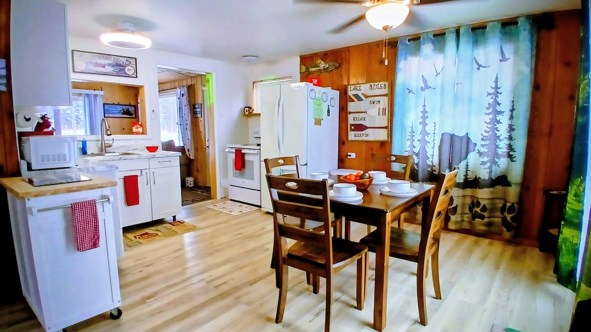 Willkommen in der entspannenden Mas-Hütte auf dem Camp Deer Trails Familien-Campingplatz. Genieße einen atemberaubenden Blick auf den langen See sowie 140 Hektar Wald zum Erkunden. Die Outdoor-Aktivitäten sind endlos mit unseren Kanus, Kajaks und Paddelbrettern. Wir haben auch unsere eigene private Insel, die du erreichen kannst, genannt Moose Island. Wir sind nur wenige Minuten von den Ausgangspunkten für alle Offroad-Fahrzeuge entfernt. In der Gegend gibt es mehrere Golfplätze, darunter Snow Snake, Tamarack und Firefly.