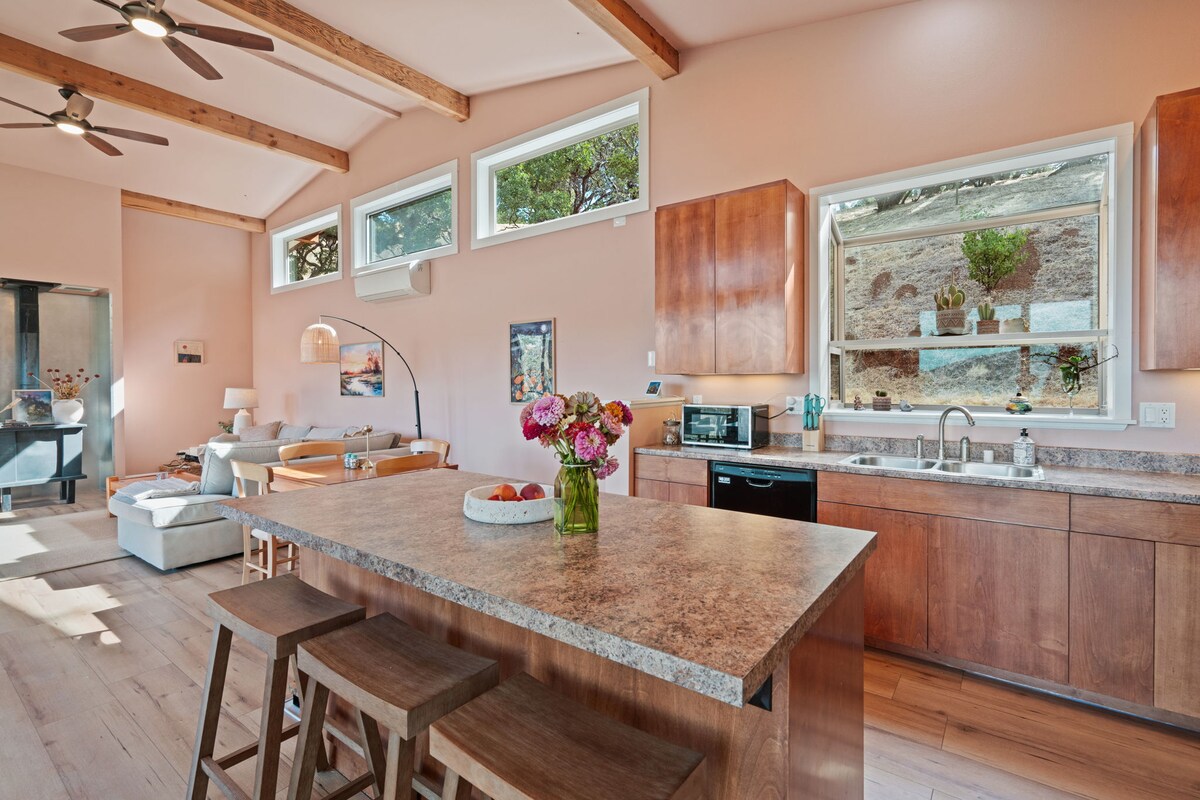 Experience the tranquility of lakeside living at the Bee Haus, perfect for a couple or small group seeking a peaceful escape. This charming retreat boasts sweeping waterfront views, high ceilings, an open concept living space, wraparound deck, and PRIVATE DOCK! Truly the perfect blend of modern comfort and natural beauty. When you’re ready for adventure, explore the lake by kayak, rent a speed boat/ jet skis, hike Mt. Konocti, wine taste at the Mercantile, or fish straight from our private dock!