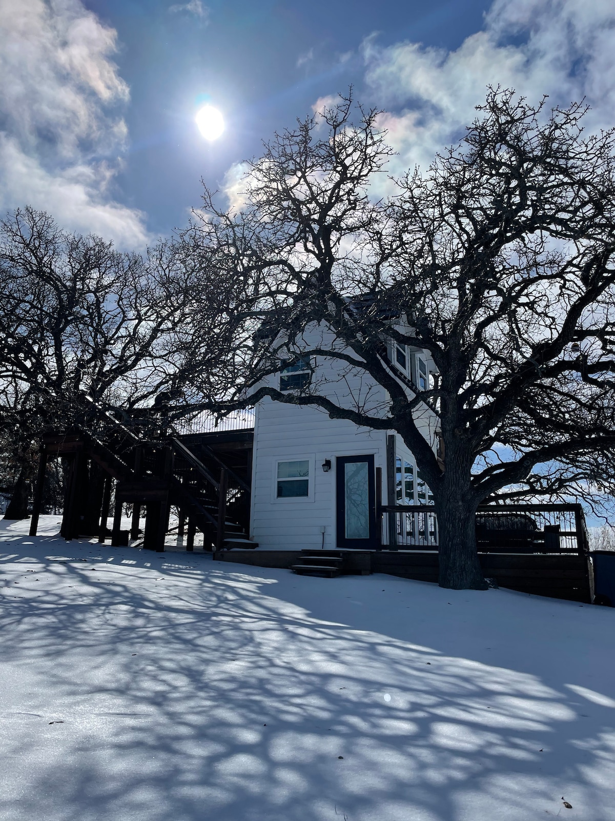 Dieses charmante kleine Ferienhaus ist ein Neubau, der im Stil „Industrial Farmhouse Chic“ gestaltet wurde. Es ist der perfekte Ort für einen romantischen Kurzurlaub oder ein entspannendes Landabenteuer. Genieße die Aussicht auf die Wälder von der abgeschirmten hinteren Veranda aus, gehe hinunter zum See oder genieße einen Tag in der Innenstadt von Granbury! Wenn du Glück hast, kannst du sogar den Roadrunner aus der Nachbarschaft sehen. Er liebt es, unsere hintere Veranda als Versteck zu nutzen!Wir würden uns freuen, dich zu haben, also komm und bleib eine Weile.