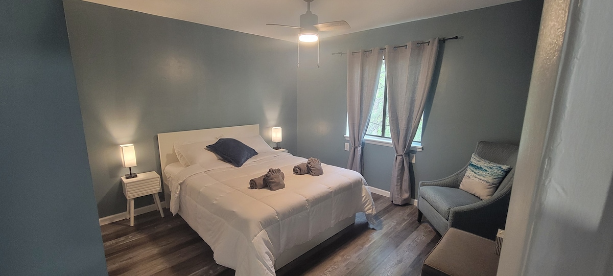 Ganz gleich, ob du wegen des großen Spiels hier bist, deinen Lieblings-College-Studenten besuchst, deine zukünftige Universität besichtigst oder einfach nur das schöne Clemson, SC, besuchst, Renfrow's Retreat ist der ideale Ort, um „Zuhause“ für deinen Besuch zu nennen. Die Innenstadt von Clemson und viele tolle Restaurants sind zu Fuß erreichbar, zusammen mit einem kostenlosen Busservice in der Stadt. Wenn du lieber drinnen bleibst, hast du eine voll ausgestattete Küche und einen Esstisch, ein komfortables Wohnzimmer mit WLAN und einen Smart-TV mit vorinstallierten Streaming-Diensten.
