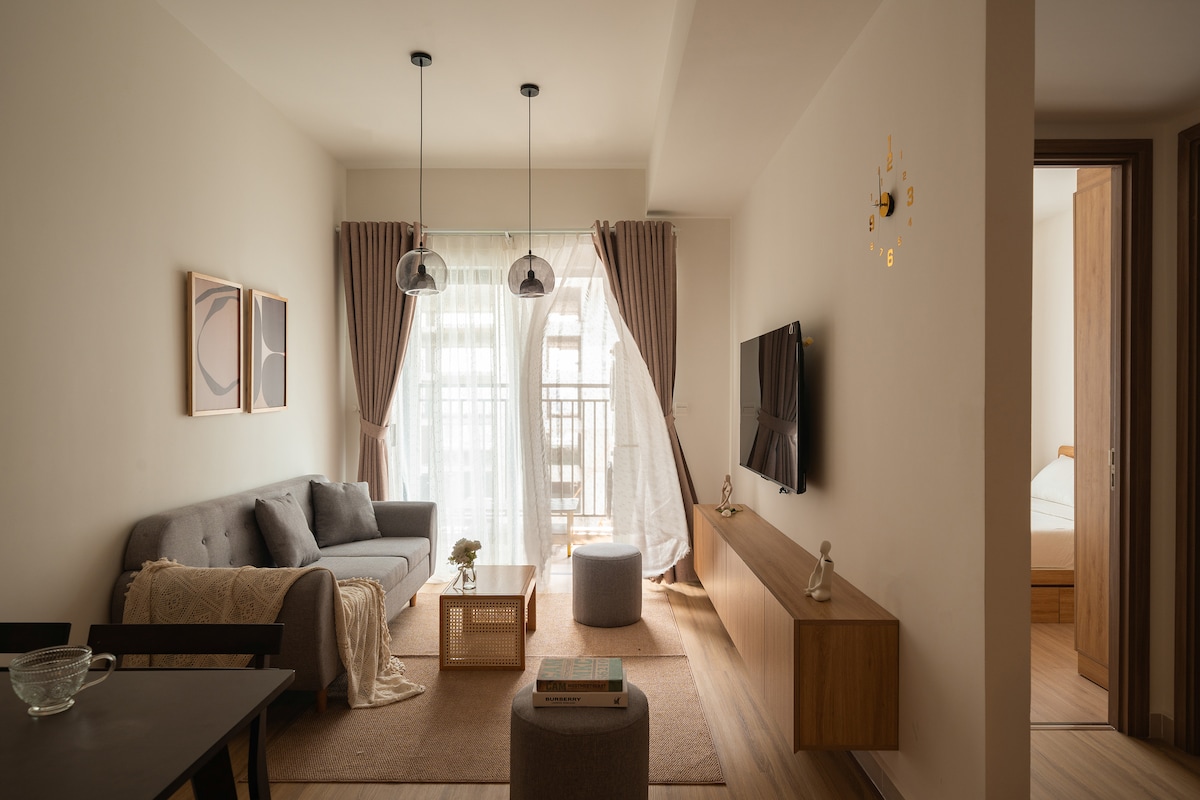 Komorebi @ Cozinema offers three unbeatable features: 1. Prime Location: Heart of HCMC, 1 min to Bui Vien Street and 5 mins to Ben Thanh Market. Surrounded by cafés, local eats, and public transports right at your doorstep. 2. Skyline & Parkfront Views: Enjoy a breezy balcony overlooking 23/9 Park, blending lush greenery with stunning city skyline lights at night - the perfect balance of calm and vibrant. 3. Cinematic Retreat: 100" 4K projector & Dolby 5.1 audio for ultimate relaxation.