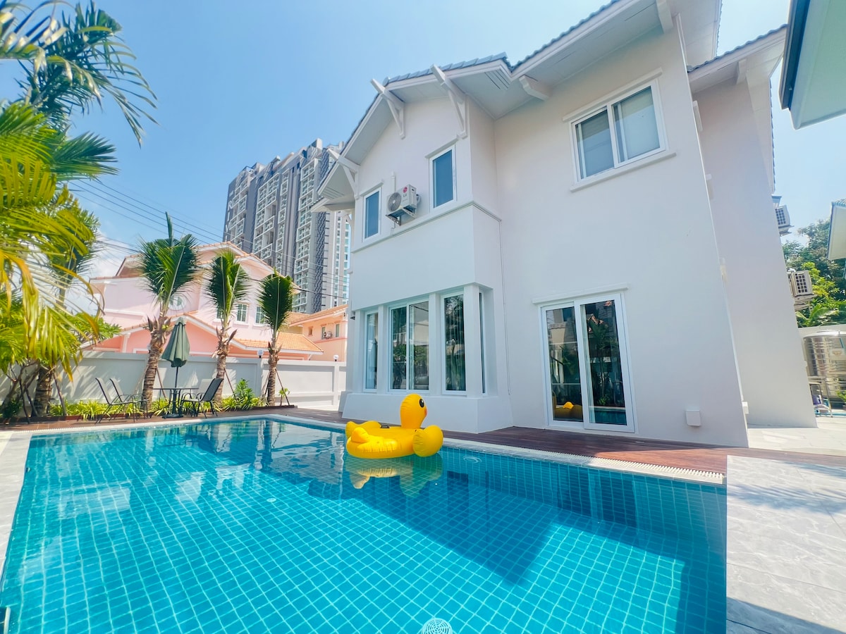 芭提雅市区中天海滩附近独栋6卧6卫8床豪华泳池别墅J5(可提供漂浮早餐和BBQ服务需另付费)
