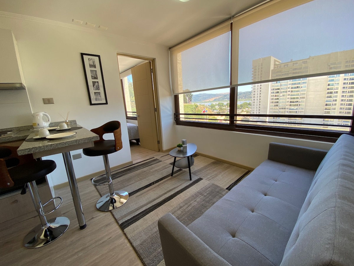 Genieße unser Studio im Herzen von Concepción, in der Nähe von Universitäten, Verkehrsmitteln, Einkaufszentren und Restaurants. Ideal für zwei Personen, die Wohnung verfügt über ein Doppelbett, eine ausgestattete Küche, ein Bad mit Badewanne, einen Smart-TV und einen Tisch zum Arbeiten/Essen. Das Gebäude bietet einen Fitnessraum, einen Coworking-Raum, einen Lieferraum, eine Wäscherei, Panorama-Pavillons und einen Gourmet-Salon. Bequemlichkeit und Komfort in zentraler Lage!