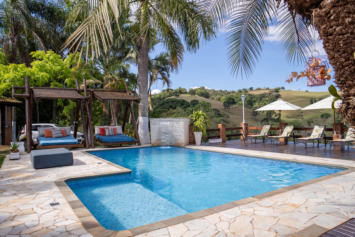 Glasiertes Loft in atemberaubendem und einzigartigem Stil inmitten von Cafés und viel Natur der Serra da Mantiqueira, mit dem Recht zu einem privaten Wasserfall. SPA mit Hydromassage und Chromotherapie und Panoramablick, 100-Zoll-Bildschirm, automatisierte Vorhänge mit Sprachbefehl. Küche mit Gourmet-Insel, komplett ausgestattet. Brennholz-Pizzaofen und Grill. Sandplatz für Volleyball/Strandtennis. Italienisches Bett und Sofa. Panorama-Trockensauna. Feiere die Liebe, indem du deine unvergesslichen Momente aufnimmst.