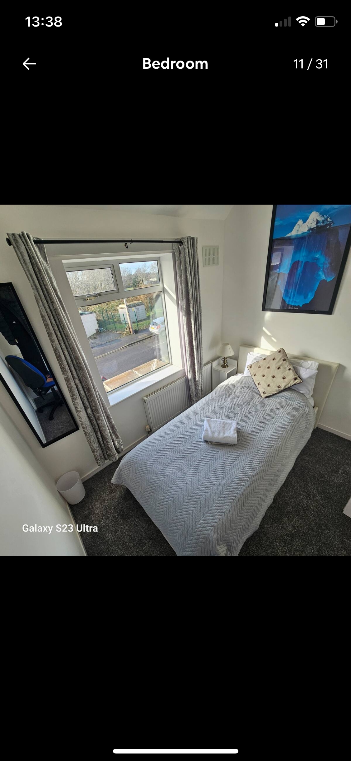 Ein sehr heller und luftiger schöner Raum - eine neue Simba Standard-Doppelmatratze, die meiner Meinung nach wirklich bequem ist. Dies ist ein ruhiger Ort, aber sehr nah an der Mall, der Wave und dem Zoo und nur 6 Meilen von der Stadt entfernt - ein perfekter Nachtschlaf auf einer SIMBA-Matratze und mit großen, flauschigen, weißen Handtüchern und allem, was du für eine Nacht weg von zu Hause brauchst. Wir haben auch einen neuen Fernseher mit iplayer und Netflix's, eine neue Waschmaschine und eine anständige Bratpfanne.