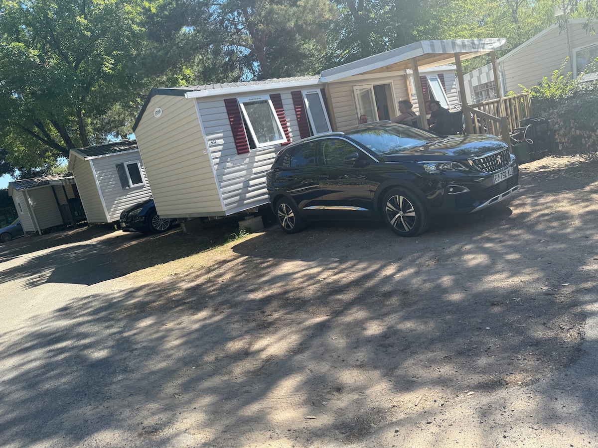 MOBIL-HOME confortable & cosy 40m2 au calme, idéal pour vacances ou déplacement CONTROLE entre 2 locations, draps et serviettes jetables fournis LOCATION linge tissus SEJOUR CENTRAL , parties nuits aux extrémités 3 CHAMBRES, 1 lit double & 4 lits simples, 2 Salles d'eau & 2 WC CHAUFFAGE dans toutes les pièces, double vitrage, stores occultants et moustiquaires dans les chambres TERRASSE COUVERTE, parking privé ARRIVEE de 14 à 21 heures et départ 11 heures Sans SUPPLEMENT énergétique