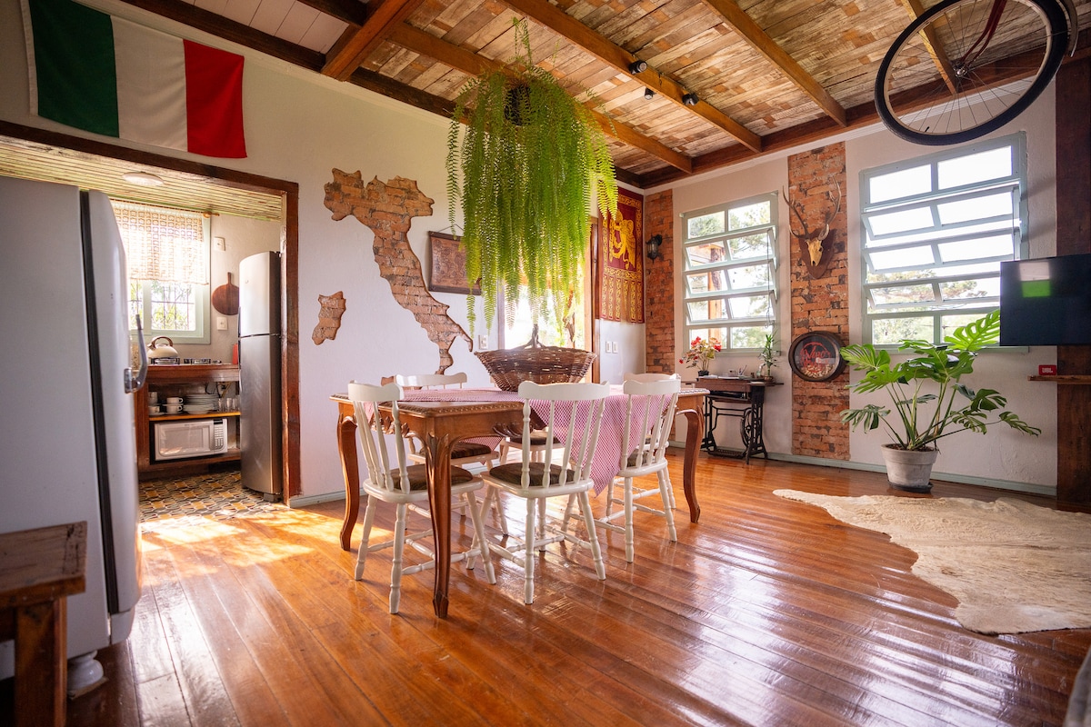 🌄 Cabana Trentino ist ein exklusiver Rückzugsort in Serra Gaúcha, ideal für Paare, Familien und Haustiere 🐾. Es gibt 2 klimatisierte Zimmer, ein Wohnzimmer mit Kamin, eine voll ausgestattete Küche, ein Badezimmer mit Dusche, eine Waschküche und WLAN. Draußen: Garten mit See, Feuerstelle, Obstgarten🍎🍊, Platz für Kinder und Pferde🐴. Höhepunkt für das Spa für 4 interne Personen und das externe Ofurô, sowie Weingut🍷, handgemachte Pizzen und Korb mit kolonialen Köstlichkeiten💝. Trinkwasser direkt aus dem Brunnen 💧
