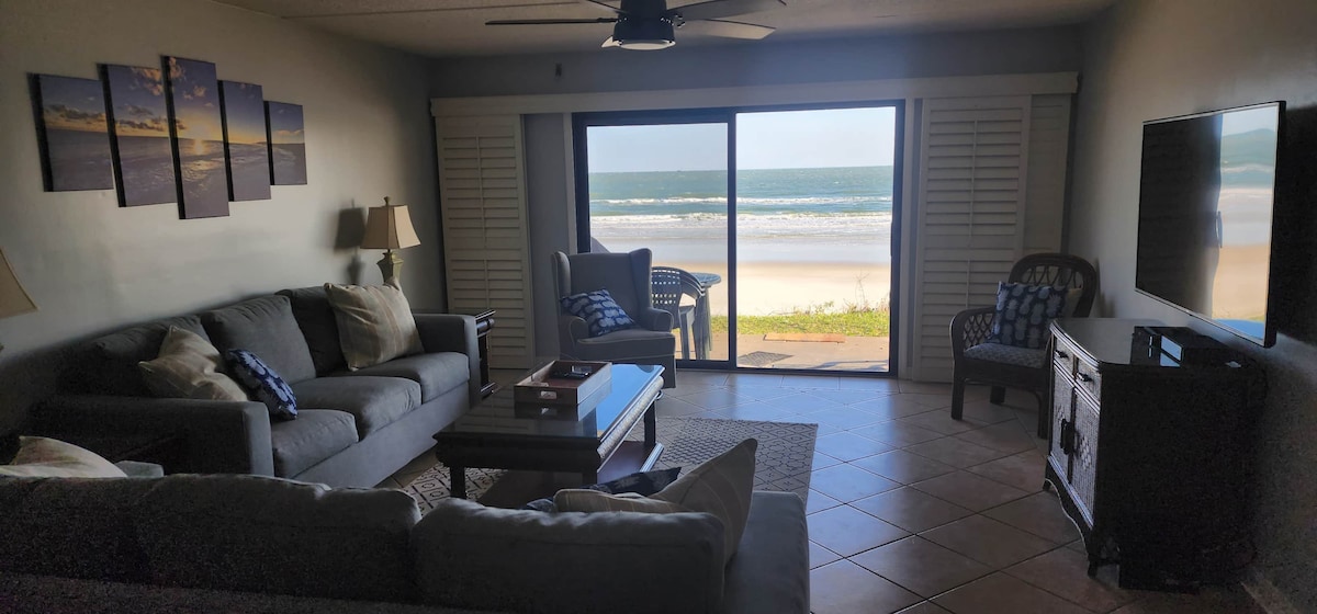 BEST spot to watch the sunrise, (and moonrise) on St Augustine Beach from every room in the condo and from the two direct beach front balconies! CORNER UNIT! TOP FLOOR! One balcony off the upstairs corner primary bedroom suite, walk in closet and ocean view King size beds in each bedroom. Anytime is a good time to be on the beach in St. Augustine! Winter Spring, Summer, or Fall! Besides being steps from the beach there are plenty of local eateries,great food, live music within walking distance.