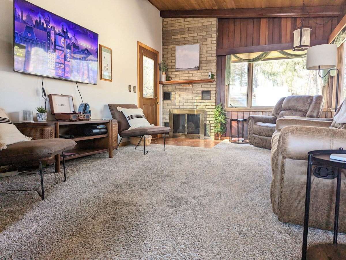 Escape to a lakeside retreat just minutes from downtown Newaygo, MI. This 3-bedroom, 1600 sq ft, 2 story home sleeps 14 with a king, queen, 4 twins, and 2 memory foam queen fold-out couches. Enjoy 4 Kayaks, a paddle boat, and a pontoon (additional fee). Relax by 2 fireplaces, cook in the fully stocked kitchen, unwind in the hot tub, or enjoy one of several yard and board games. Perfect for swimming, fishing, and family fun on this private all sports lake. Book your stay today on Pettit Lake!