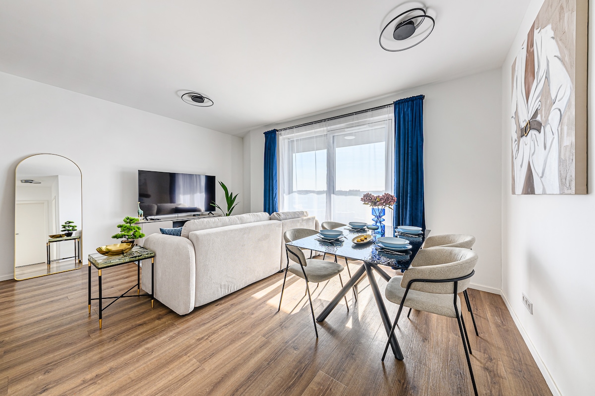 Willkommen in unserer gemütlichen Wohnung in einer Wohnanlage im italienischen Stil. Diese Unterkunft ist perfekt für diejenigen, die Ruhe und Komfort schätzen. Das Hauptmerkmal ist ein geräumiger Balkon mit Whirlpool, Außendusche, Liegestühlen und einem Essbereich. Der Komplex ist von Geschäften, darunter 24-Stunden-Geschäften, und Cafés umgeben. Die günstige Lage bietet eine gute Anbindung an die öffentlichen Verkehrsmittel, sodass du jeden Punkt der Stadt schnell erreichst. Unsere Wohnung ist dein gemütlicher Rückzugsort in der Stadt.