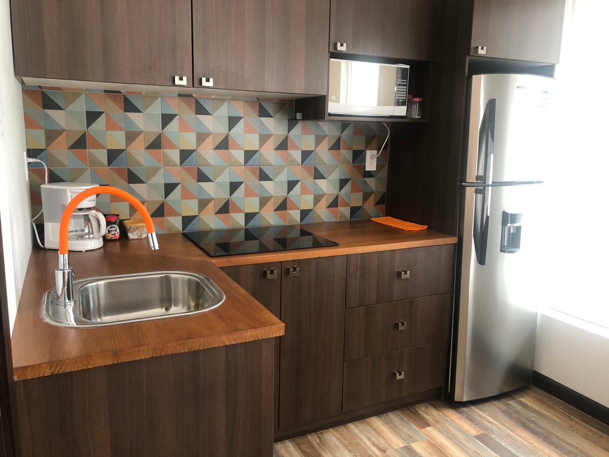 Este lugar con una ubicación estratégica: será fácil planear su visita!; ubicados a 1 cuadra del Parque de La Paz o del centro deportivo C TRES. cerca de Restaurantes o pizzerías; a 2.5 km de la Catedral, podrá movilizarse a pie. Tiene 1 dormitorio con 1 cama matrimonial y una sala con sofá cama de 2 plazas, comedor/ cocina y baño completo. Uso de lavadora y secadora una ves por semana.