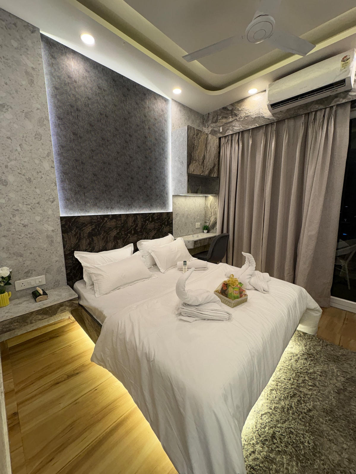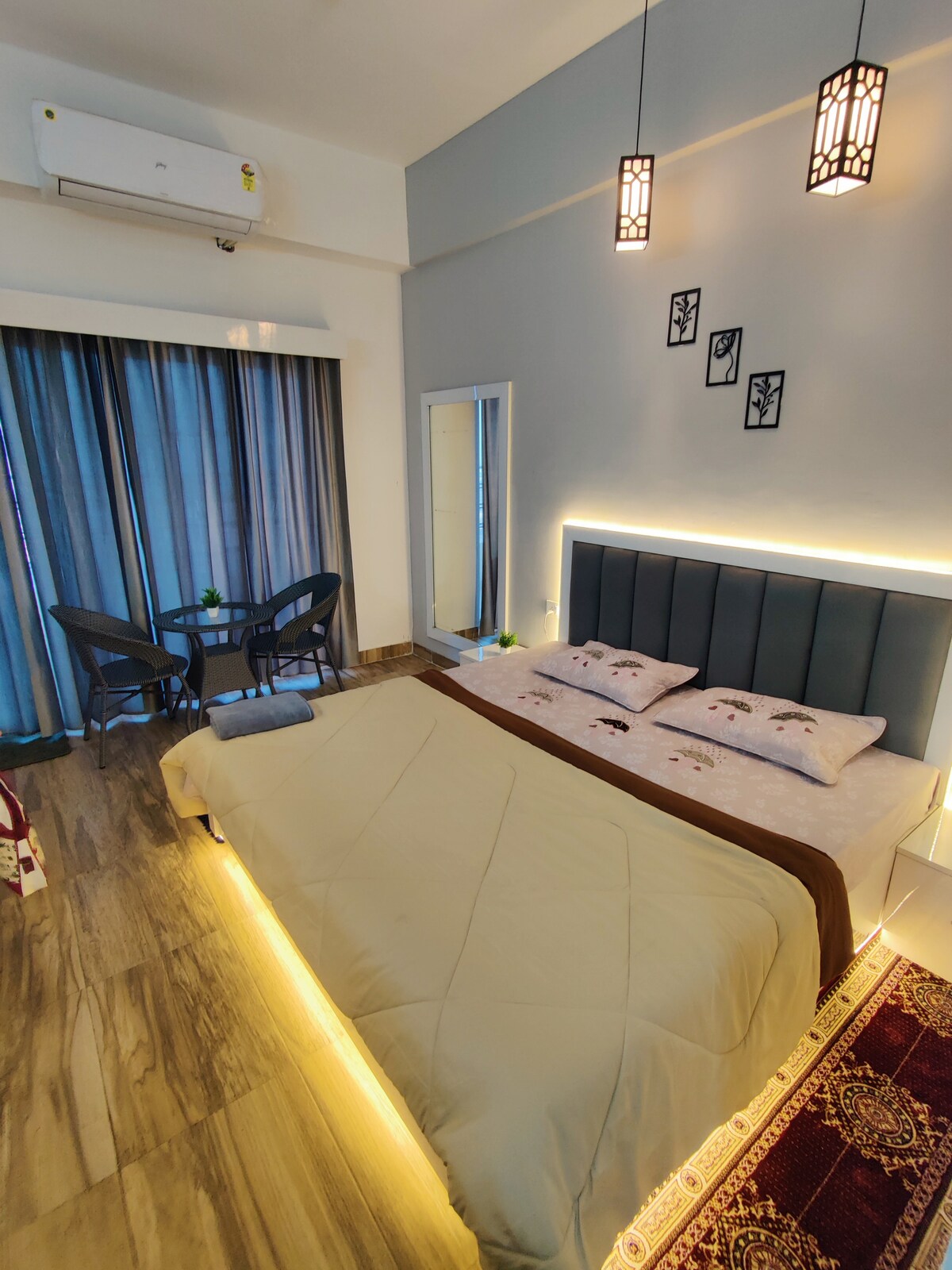Welcome to Trovero Suites Nestled in the heart of Greater Noida, Near Expo Mart (8 km) ✨ What You’ll Love: ✔ Private Balcony – Enjoy the Mesmerizing scenic view ✔ Prime Location – Close to top attractions, restaurants ✔ Modern Comfort – A beautifully furnished space with a comfy bed, cozy seating, and stylish decor. ✔ Fully Equipped Kitchen – Cook your favorite meals with ease. ✔ Fast WiFi & Smart TV – Stay connected and entertained. ✔ Serene Ambiance – A peaceful Luxurious and private retreat