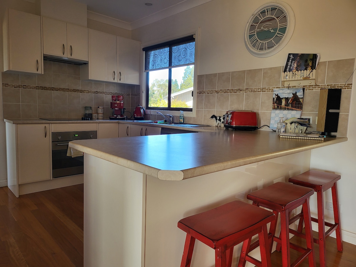 Genieße die Ruhe und den Frieden unseres Landhauses aus Lehmziegeln mit modernen Einrichtungen wie Holzofen, Klimaanlage und einem Mineral-Magnesium-Pool und das nur 4 km von der Stadt entfernt. Die Gäste haben das gesamte Ferienhaus für sich allein. Es ist von Veranden umgeben, die die Paddocks überblicken, schön zum Grillen und Sitzen und Entspannen. Buschwanderungen sind auf dem Grundstück möglich. Wir haben eine große Auswahl an Vogelwelt Eventuell siehst du auch Kängurus oder gelegentlich Emus. Viel Platz zum Parken